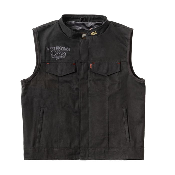 El chaleco de de lona negra West Coast Choppers x 13 1/2 Dominator es fruto de la colaboración con 13 1/2 Company. La idea surgió durante una visita a Europa en 2023 y un encuentro con 13 1/2 . El resultado es un conjunto de tres chalecos de montar de cuero, lona o mezclilla. Todos con detalles originales y un forro interior de una de las mejores motos de cobre de West Coast Choppers. El chaleco lucirá aún mejor cuanto más lo uses, gracias a sus varios bolsillos interiores y exteriores con cremalleras o botones a presión. El ajuste de este chaleco se basa en llevarlo sobre una camiseta, un suéter o simplemente tal cual. Si quieres usarlo sobre una chaqueta, podrías necesitar una talla más grande de lo habitual. No busques más, este es tu nuevo chaleco de cuero favorito, que viene en una caja de cartón individual impresa.
